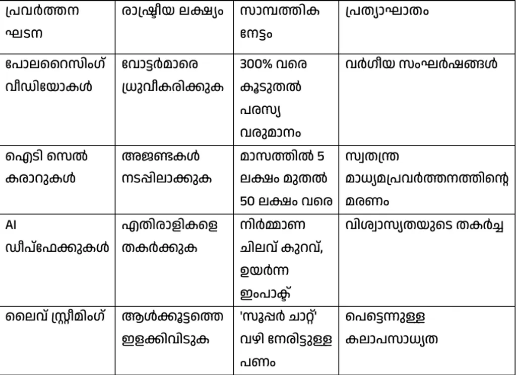 വിദ്വേഷ പ്രചാരണം എങ്ങനെ സാമ്പത്തികമായി വളരുന്നു എന്ന് വ്യക്തമാക്കുന്ന പട്ടിക: