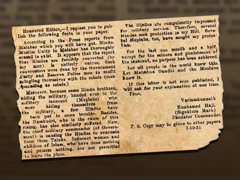വാരിയംകുന്നത്ത് 'ദി ഹിന്ദു' വിലേക്കയച്ച കത്ത് പുനർവായിക്കുമ്പോൾ