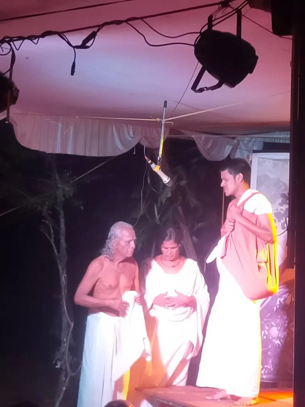 കടന്നുപോയ കാലത്തെ വിശാലമായ ക്യാൻവാസിലാണ് സച്ചിദാനന്ദൻ ചിത്രീകരിക്കുന്നത്. ജീവിതാഖ്യായികയും ചരിത്രാഖ്യായികയുമായ നാടകത്തെ മൂഴിക്കുളം ശാലയുടെ ബാനറിലാണ് രംഗക്ഷമമാക്കി അവതരിപ്പിച്ചത്. അനേകം ശ്രദ്ധേയമായ നാടകങ്ങളുടെ സംവിധായകനായ ഡോ. എം. പ്രദീപൻ അനനുകരണീയമായ സംവിധാനമികവിനാൽ ഏറെ ഹൃദ്യവും ചിന്തോദ്ദീപകവും പ്രചോദനാൽമകവുമായ അരങ്ങനുഭവം ആക്കി മാറ്റിയിട്ടിട്ടുണ്ട്. അരങ്ങിന്റെ അതിർത്തികൾക്കുള്ളിലേക്ക് ഈ കലാസൃഷ്ടിയെ ഒതുക്കി സന്നിവേശിപ്പിക്കുക എന്ന വെല്ലുവിളിയെ വിജയകരമായി തന്നെ നേരിട്ടു.