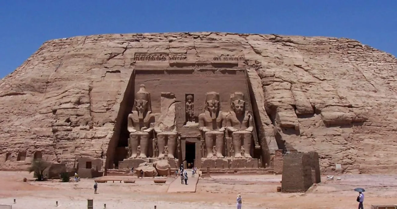 19-ാം രാജവംശത്തിലെ ഫറവോ രമിസിസ് രണ്ടാമനാണ്, 1244 ബി.സി.യിൽ, വലിയ മലഞ്ചെരുവിൽ നേരിട്ട് കൊത്തിയെടുത്ത അമ്പലം പണിതത്. അതിൽ അയാൾ തന്റെ തല, തന്റെ ഫിഗർ, തന്റെ മുഴുരൂപം രീതി ആവോളം പിന്തുടർന്നിട്ടുണ്ട്. തന്റെ ഇരിക്കുന്ന നാല് വലിയ പ്രതിമകളും ഭാര്യയായ നെഫ്രീത്തിയുടെ ചെറിയ പ്രതിമകളുമുണ്ട്. നാലു വലിയ പ്രതിമകളിൽ ഒന്നിന്റെ തല പൊട്ടിപ്പൊടിഞ്ഞുപോയതായി ചിത്രത്തിൽ കാണാം. ഈജിപ്ഷ്യൻ പ്രതിമയുടെ ഭീമാകാരം കരുത്തിനെ സൂചിപ്പിക്കുന്നതാണ്. അളവിലാണ് പ്രധാന്യം. ഡാം ഉയരുമ്പോൾ, അമ്പലം മുഴുവനായി മുങ്ങിപ്പോകുമെന്ന സ്ഥിതിയായപ്പോൾ അന്നത്തെ ഈജിപ്ഷൻ ഗവൺമെൻറ് യുനെസ്കോയുടെ സഹായം അഭ്യർഥിച്ചു. യുനെസ്കോയുടെ വേൾഡ് ഹെറിറ്റേജ് പദ്ധതിയുടെ രൂപീകരണത്തിന് ഹേതുവായ ഈ പരിശ്രമം ലോകപുരാവസ്തു ചരിത്രത്തിൽ തന്നെ ആദ്യമായതും പ്രാധാന്യമുള്ളതുമാകുന്നു. പ്രഗത്ഭരുടെ അധ്വാനവും ലോകരാജ്യങ്ങളുടെ സാമ്പത്തികസഹകരണവും ലഭ്യമാക്കികൊടുക്കാൻ യുനെസ്കോക്ക് കഴിഞ്ഞു.