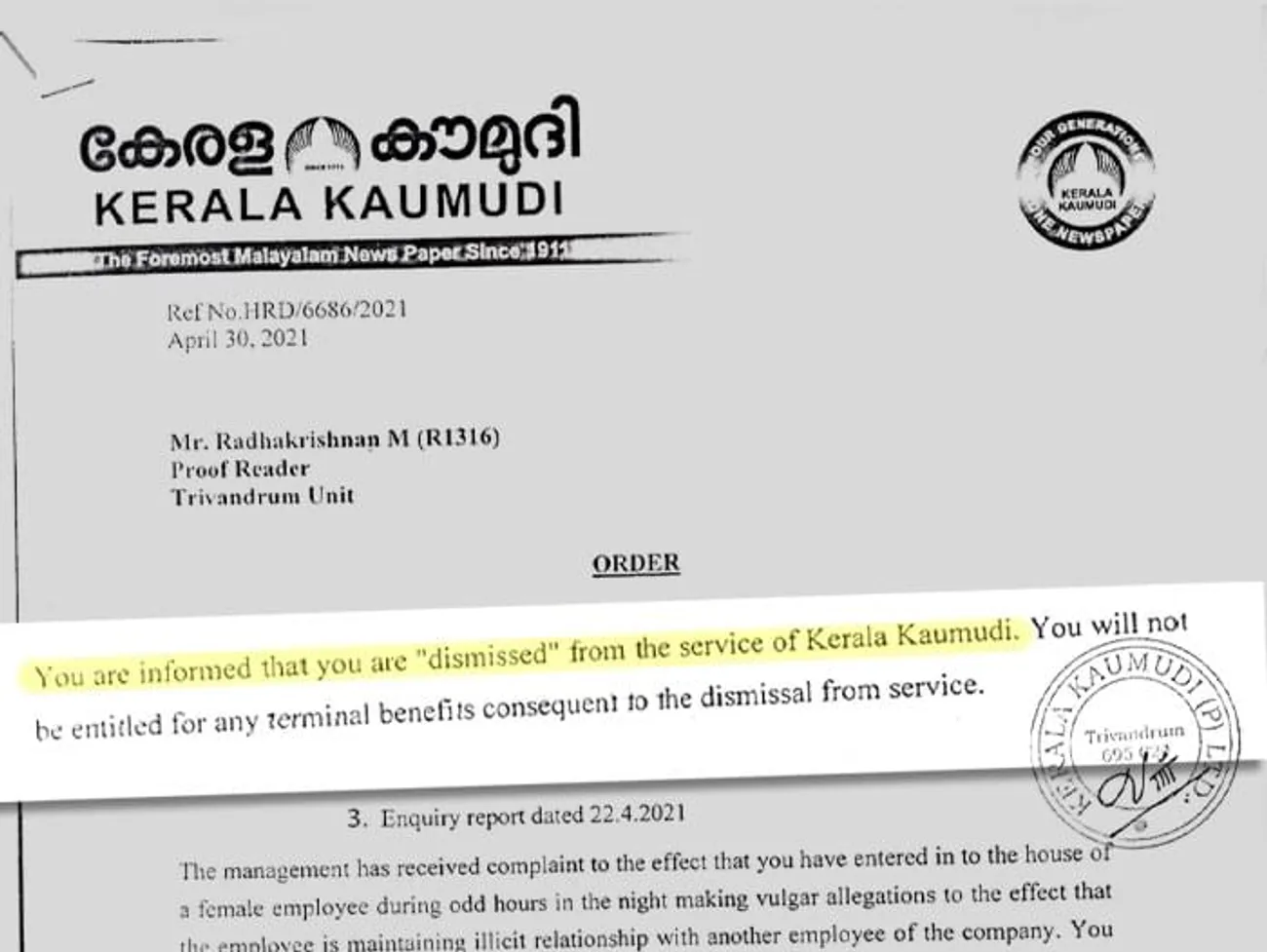 ഈ സമയമൊക്കെയും ഞാൻ പേട്ട പൊലീസ് സ്റ്റേഷനിൽ നൽകിയ പരാതിയിൽ അന്വേഷണം നടക്കുകയായിരുന്നു, ഞാൻ ജോലി ചെയ്യുന്ന സ്ഥാപനമായ കേരള കൗമുദിയും സംഭവത്തെക്കുറിച്ച് അന്വേഷിക്കാൻ പുറത്തുനിന്നുള്ള നിയമവിദഗ്ധൻ അദ്ധ്യക്ഷനായ ഒരു കമ്മിറ്റിയെ ചുമതലപ്പെടുത്തിയിരുന്നു. കേരള കൗമുദിയിൽ നൽകിയ പരാതിയിൽ അന്വേഷണം പൂർത്തിയാക്കി, ചെയ്ത കുറ്റത്തിന് കേരളകൗമുദിയിൽ പ്രൂഫ് റീഡറായി ജോലി ചെയ്തിരുന്ന എം. രാധാകൃഷ്ണനെ സ്ഥാപനത്തിൽ നിന്നും പിരിച്ചുവിട്ടു. കഴിഞ്ഞ ദിവസമാണ് എന്റെ പരാതിയിൽ സ്ഥാപനം സ്വീകരിച്ച നടപടികളെക്കുറിച്ചുള്ള ഔദ്യോഗിക അറിയിപ്പ് എനിക്ക് ഓഫീസിൽ നിന്ന് ലഭിച്ചത്. അതെനിക്ക് നൽകിയ ആശ്വാസമാണ് ഇപ്പോഴെങ്കിലും ഇത്രയെങ്കിലും എഴുതാനുള്ള ധൈര്യം എനിക്ക് നൽകുന്നത്.