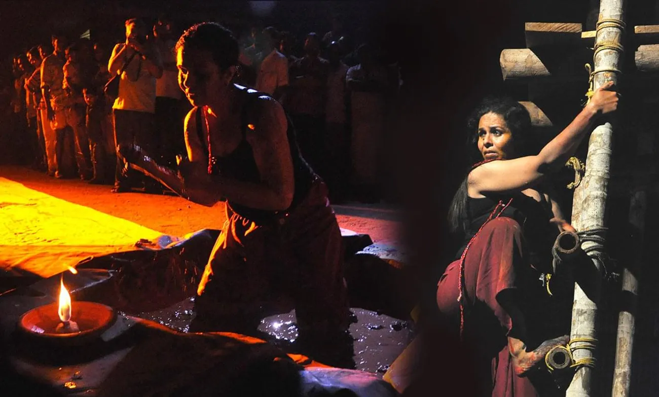 ‘ഏതോ ചിറകടിയൊച്ചകൾ’ ഞാൻ മുമ്പു ചെയ്തിട്ടുണ്ട്. കണ്ണൂരിലെ ഒരു ക്യാമ്പിൽ. അന്ന് വത്സൻ എന്ന സംവിധായകനാണ് സംവിധാനം ചെയ്തത്. ഇവിടെ ഞങ്ങൾ റിഹേഴ്സൽ ചെയ്തു തുടങ്ങിയപ്പോൾ എന്തു ചെയ്താലും പഴയതു തന്നെ വരുന്നു. ശരീരം കണ്ടീഷൻഡ് ആയിപ്പോയി. നാടകത്തിൽ കുന്തിയും സൂര്യനും തമ്മിലുള്ള ലൈംഗിക ബന്ധത്തിന്റെ സീൻ ഉണ്ട്. കണ്ണൂരിലെ ക്യാമ്പിൽ അന്ന് ആ സീൻ ചെയ്യുമ്പോൾ എനിക്ക് അറപ്പ് തോന്നിയിരുന്നു. ഒരു വടിയിൽ സൂര്യന്റെ മാസ്ക് വെച്ചിട്ട്... സംവിധായകൻ പറഞ്ഞതു പോലെയൊക്കെ എനിക്ക് അഭിനയിക്കേണ്ടി വന്നു. സ്ത്രീയുടെ പ്രണയത്തെക്കുറിച്ചും സെക്സിനെക്കുറിച്ചും ഒരു പുരുഷന്റെ കാഴ്ചപ്പാടിലായിരുന്നു അത്. ഇവിടെ ഈ സീൻ വന്നപ്പോൾ ഞാൻ വല്ലാതെ അതേക്കുറിച്ച് ആലോചിച്ചു. പിന്നീട് ഞങ്ങൾ ചർച്ച ചെയ്തു. എപ്പോഴും ചർച്ച തന്നെ. ഞങ്ങളുടെ സുഹൃത്തുക്കളായ പുരുഷൻമാരൊക്കെ വിചാരിച്ചു ഞങ്ങൾ ഒന്നും ചെയ്യില്ല എന്ന്. പുരുഷൻമാരെ ആരേയും അകത്ത് കയറ്റിയില്ല. സ്വന്തം പ്രണയം എല്ലാവരും പങ്കിട്ടു. ഞങ്ങൾ വ്യക്തിപരമായ എല്ലാം പങ്കിട്ടു. അതൊക്കെ ഇംപ്രൊവൈസ് ചെയ്ത് നോക്കും. ജീവിതത്തിലെ ഓരോരോ സംഭവങ്ങളുമെടുത്ത് ഇംപ്രൊവൈസ് ചെയ്തു നോക്കും. ഒടുവിൽ ലവ് മെയ്ക്കിംഗ് മാത്രമെടുത്ത് ഇംപ്രൊവൈസ് ചെയ്തു തുടങ്ങി. ഏറ്റവും കൂടുതൽ ബുദ്ധിമുട്ടിയത് ഈ രംഗം ചെയ്യാനായിരുന്നു. പലപ്പോഴും പഴയ അഭിനയരീതികൾ അറിയാതെ കടന്നുവരുമായിരുന്നു. ഒടുവിൽ ശരീരഭാഷ എന്തായിരിക്കണം എന്ന ചർച്ചയിൽ എല്ലാം തല തിരിച്ചിടണം എന്നു തോന്നി. വ്യായാമങ്ങളുടെ ചില പരീക്ഷണങ്ങൾ വെറുതെ ചെയ്തു നോക്കി. നാടകത്തിൽ കുന്തിക്ക് ചെറിയ പ്രായമാണ്. കാലു കറക്കുന്ന ഒരു വ്യായാമം ചെയ്തു നോക്കി. നാടകത്തിൽ ഞങ്ങൾക്ക് ആവശ്യമായ ഒരു ശരീരഭാഷ കണ്ടെത്താൻ ശ്രമം നടത്തുകയായിരുന്നു. നാടകം ചെയ്യുമ്പോൾ വല്ലാത്ത വാശിയായിരുന്നു.