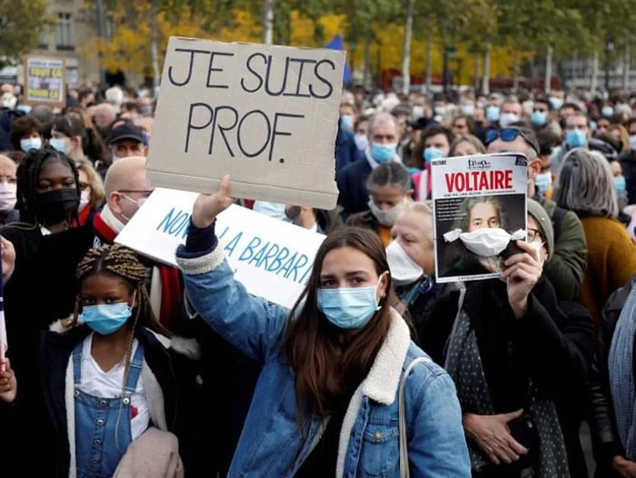 ഫ്രഞ്ച് പത്രമായ Le Monde മുഖപ്രസംഗത്തിൽ ഇങ്ങനെ എഴുതി: ‘മുൻകൂട്ടി ആസൂത്രണം ചെയ്ത് ഒരു വ്യക്തിയെ നിഷ്ഠൂരമായി കൊല്ലപ്പെടുത്തിയിരിക്കുന്നു, കാരണം അദ്ദേഹം ചിന്തിക്കാനും, അഭിപ്രായം പറയാനും വരയ്ക്കാനുമുള്ള സ്വാതന്ത്ര്യത്തെക്കുറിച്ച് തന്റെ ശിക്ഷണത്തിൽ ഉൾപ്പെടുത്തിയെന്നതാണ്. ഈ സ്വാതന്ത്ര്യത്തെക്കുറിച്ച് തീർച്ചയായും പഠിപ്പിക്കേണ്ടതുണ്ട്. നമ്മുടെ രാജ്യത്തിന്റെ അടിസ്ഥാന മൂല്യങ്ങളിൽ ഉൾപ്പെട്ടതാണിത്. നമ്മുടെ ചരിത്രത്തിന്റെ, നമ്മുടെ സ്വത്വത്തിന്റെ, സംസ്കാരത്തിന്റെ കാതലാണത്. അതാണ് ഇപ്പോൾ ആക്രമിക്കപ്പെടുന്നത്' (Le Monde 2020 ഒക്ടോബർ 17).