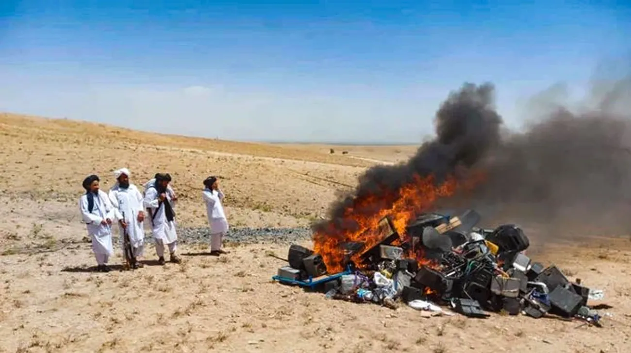 പടിഞ്ഞാറന് അഫ്ഘാനിസ്ഥാനിലെ ഹെറാത്ത് പ്രവിശ്യയിലെ വിവാഹവേദികളില് നിന്ന് പിടിച്ചെടുത്ത തബലയും ഗിറ്റാറും ഹാര്മോണിയവും മ്യൂസിക്കല് ആംപ്ലിഫയറുകളും മറ്റു ശബ്ദ വിന്യാസ വിനിമയ ഉപകരണങ്ങളുമൊക്കെ പിടിച്ചെടുത്ത് കത്തിച്ചു.